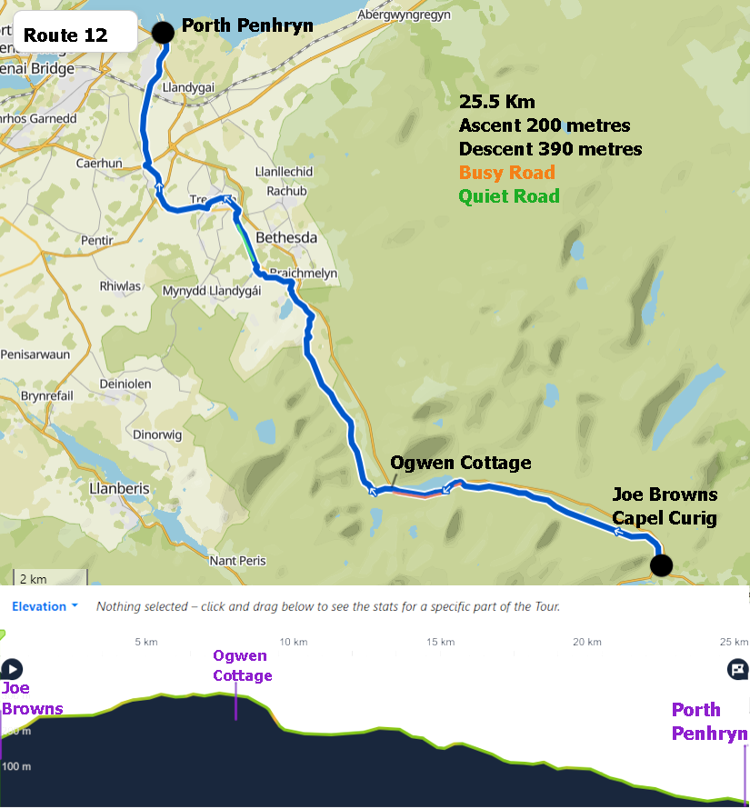 This is a relatively easy ride as there is more Downhill than Uphill riding. The ride can be started from Joe Browns at Capel Curig or Ogwen Cottage for a very easy and relaxing journey down to Porth Penrhyn on the coast. Video of ride Here!